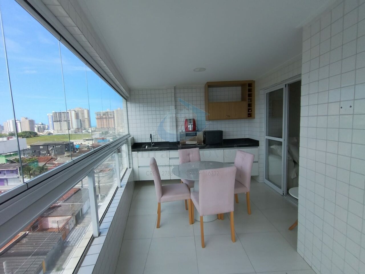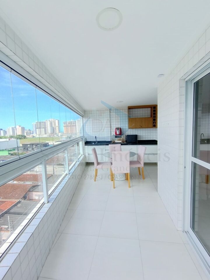 Apartamento à venda no bairro Aviação, em Praia Grande ? SP. Imóvel com 82 m², muito bem distribuído e mobiliado, oferecendo sala para dois ambientes, cozinha, área de serviço, banheiro social e sacada gourmet. Conta ainda com 2 vagas de garagem.