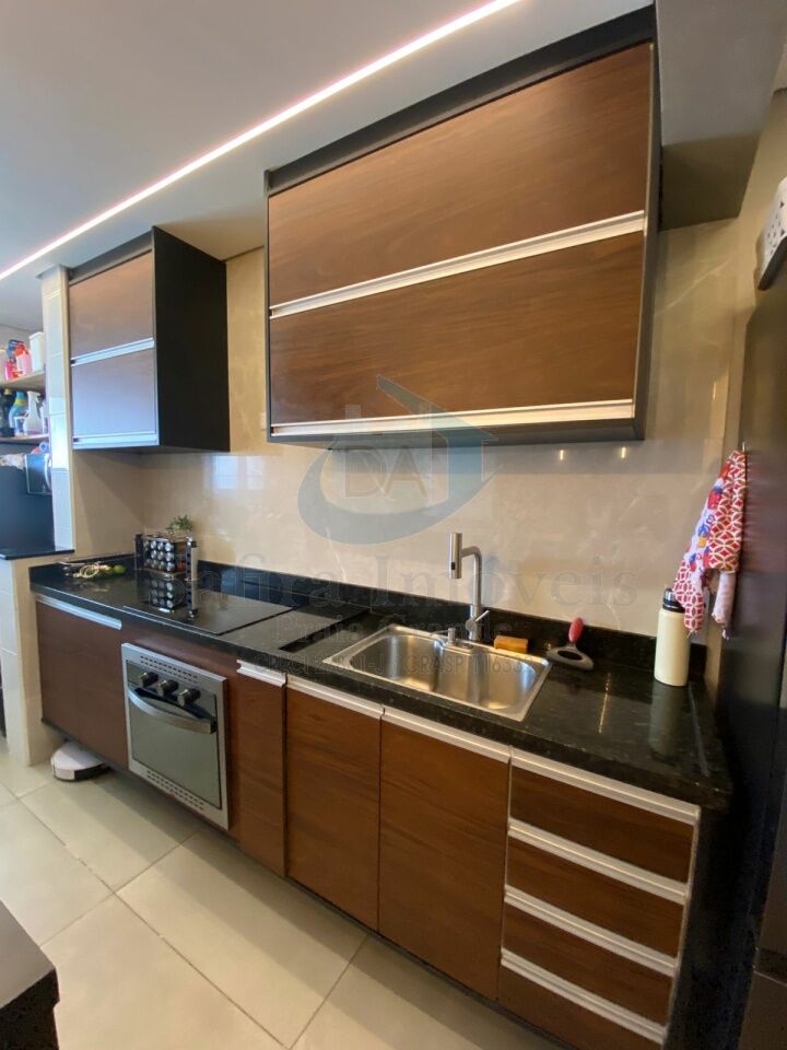 A cozinha é planejada, com armários sob medida, integrada de forma prática ao ambiente. O apartamento será vendido mobiliado e conta com projeto de iluminação moderna em LED, trazendo sofisticação e aconchego a todos os ambientes.
